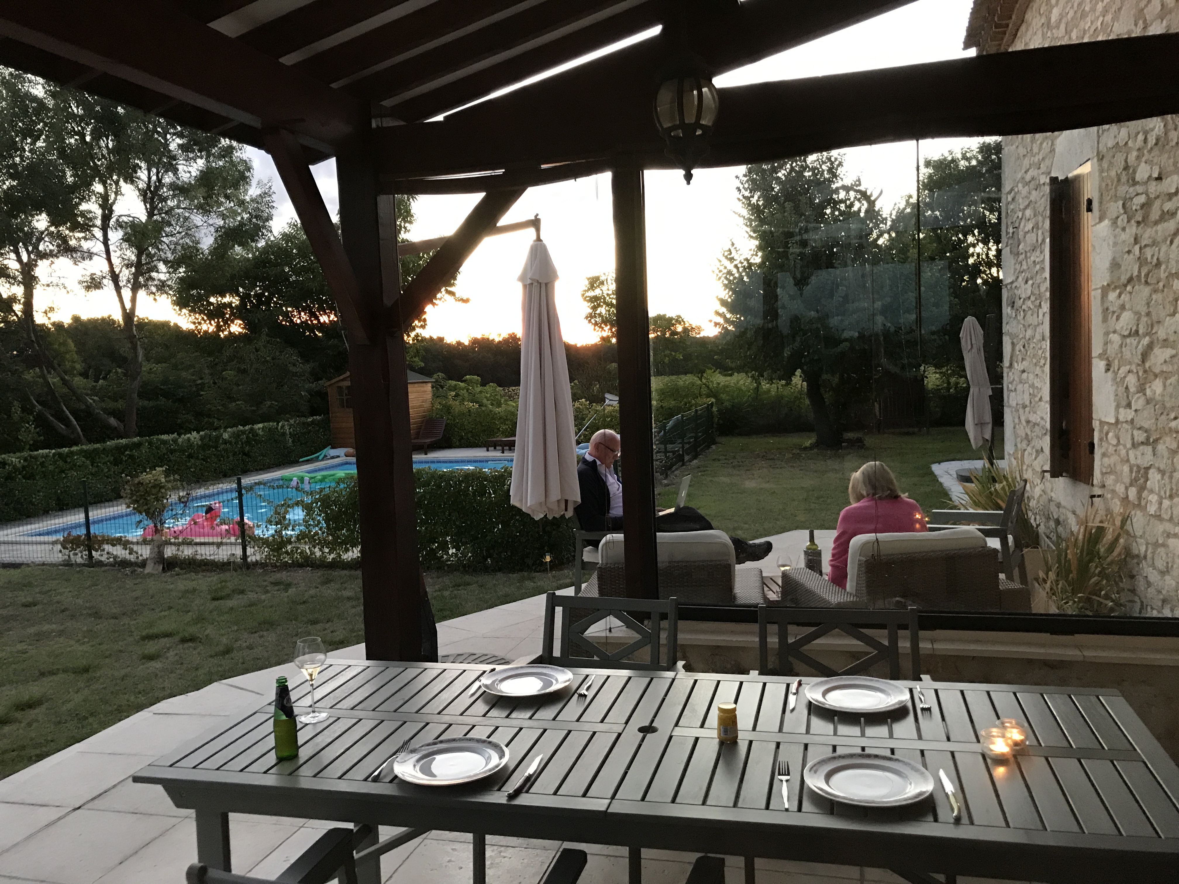 Surrounding the house is a large garden with 10m swimming pool, huge trampoline, gas barbecue, and lots of space for playing, as well as a gravelled parking area large enough for several cars and a sheltered parking spot in the barn. Outdoor terraces look out over the rolling countryside and the beautiful sunsets – perfect for evening drinks and dining (and with covered areas for lunchtime shade and afternoon snoozes).
